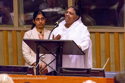 講演の中でアンマは科学界に対し、気づきと思いやりを持って研究に取り組むことを促し、彼らが技術的な研究に着手する際に、貧しい人々や苦しんでいる人々の生活向上を念頭に置くことの重要性を強調しました。